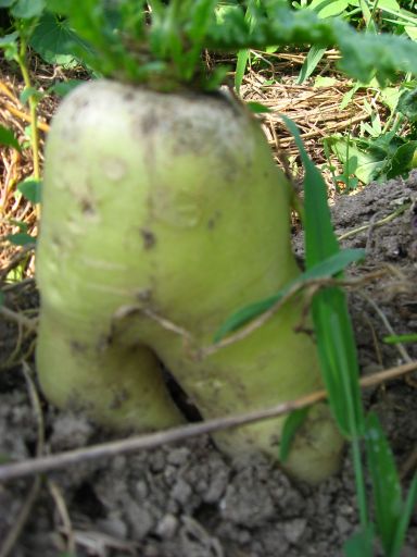 うちの畑は小石が多いので、大根やニンジンは二股になりやすいんです。