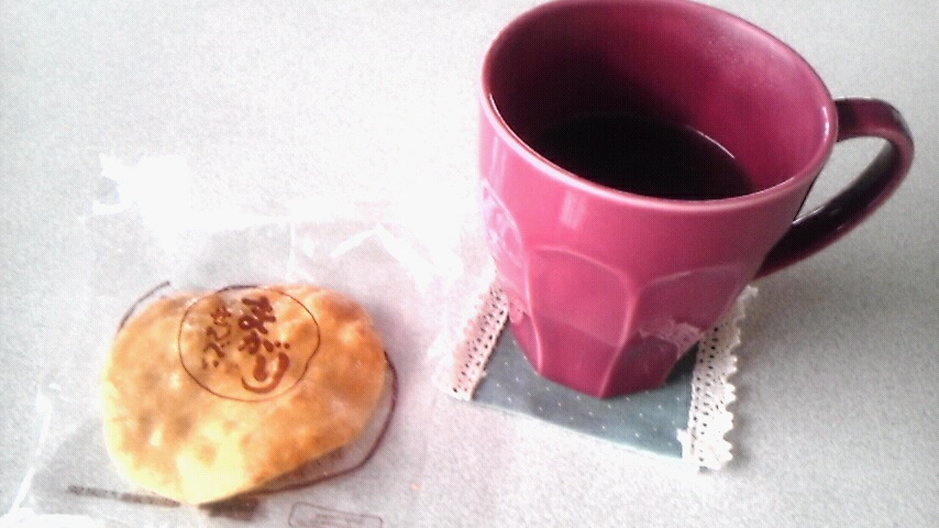 今日は『まがりせんべい』とホット麦茶。煎餅は2枚入りなんだけど昨日のうちに封を切って1枚食べてたので、ぶっちゃけ湿気てしまってます。湿気た煎餅も好きなので大丈夫です。最近うちの会社では亀田製菓の煎餅が流行ってるみたい。『のり塩揚げせん』もオススメですよー。