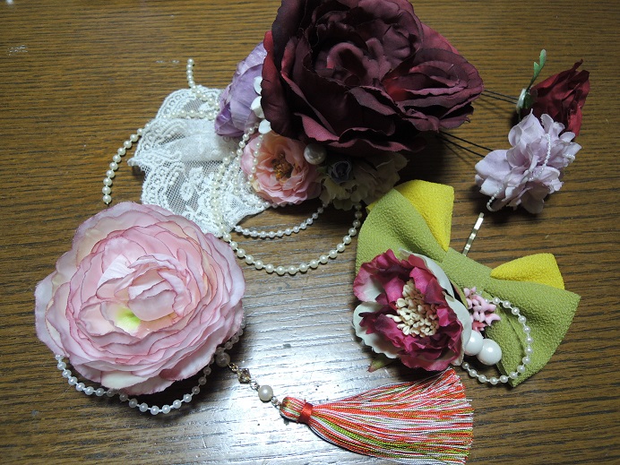 お義母さんの愉快な仲間、照ちゃんのお孫さんの成人式にお祝いとして髪飾りをプレゼントしました。