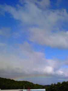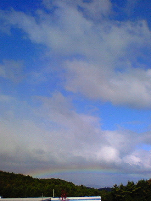 なネタの前に経過報告~。ただいま6500歩。昼前はほとんど直立不動だったので、意外に増えてないかも?そんなことより、10時の休憩中にこんな風景に遭遇。虹、…低!!寒いけど1日頑張ろうと思った。しかし、ホントに遮るものが無い…遥か彼方の山が見えてますよ。