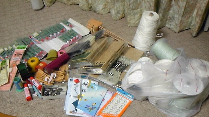 他にも木工の金具やネジがゴシャっと入っていた段ボール箱を丸ごと買い上げたり、入園バッグに良い感じの組紐や平紐などなど・・・