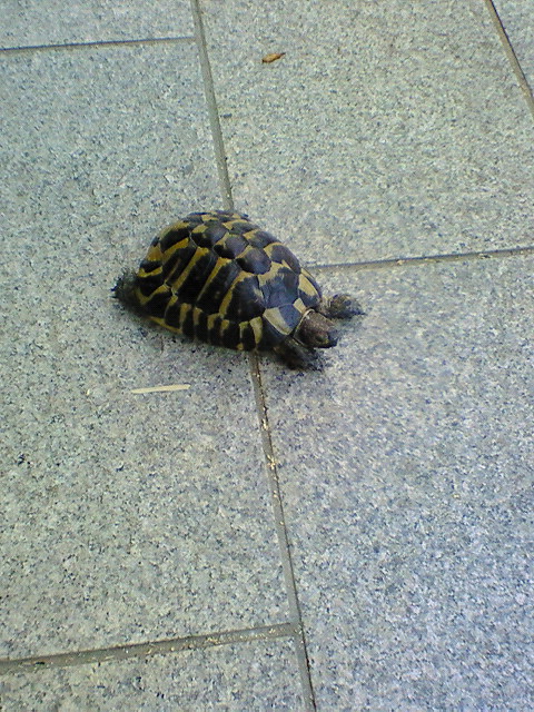 今日は、亀のおうちの砂を換えるために外に出されて散歩