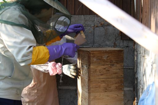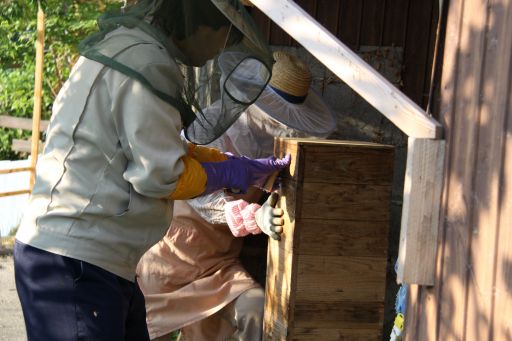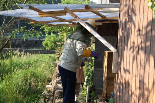 日本蜜蜂は巣が柔らかくて、西洋蜜蜂のような巣素での養蜂が難しいのです。
