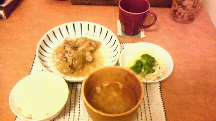 しょうが焼きもどきは、今朝 朝ご飯とお弁当用に作って余ったものなので結局朝昼晩と食べたことに・・・