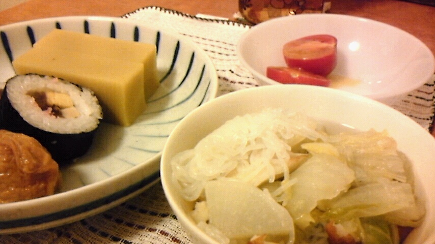 我が家では蕎麦はけんちん汁が定番なので、暖かいお蕎麦で食べました。