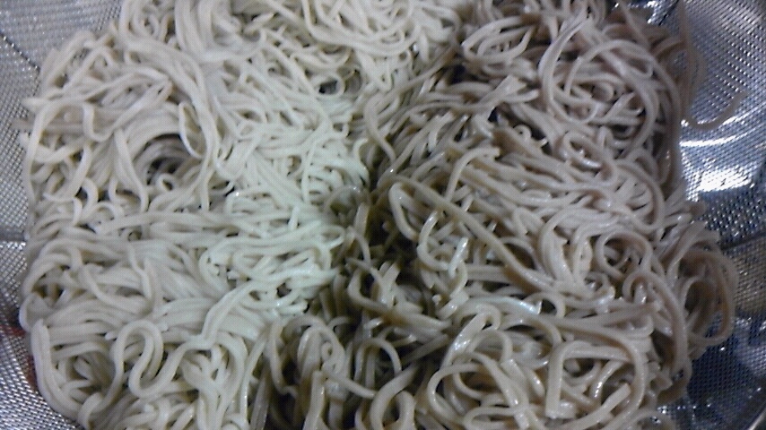 右の色の濃い方が我が家の蕎麦粉を打ったもの。