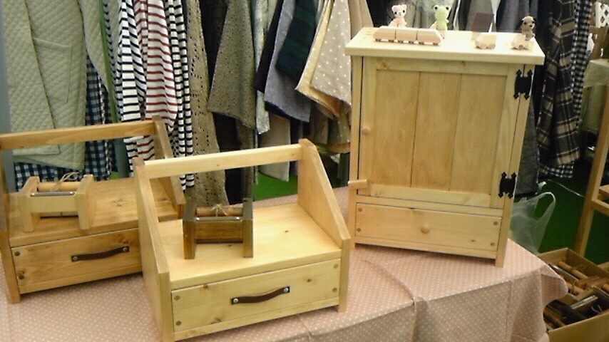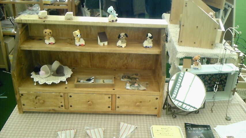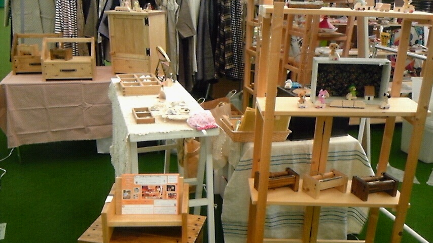 学校で作った花台とか釘箱とか、イベント用に作ってる作品とかを展示予定です。