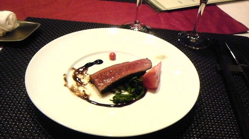 ソースはバルサミコを煮詰めたソースで、マイクロトマトが1粒宝石のように添えてありました。