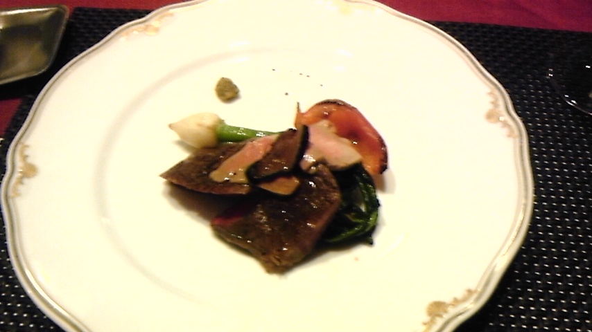 お肉の上にフォアグラのテリーヌとトリュフが!