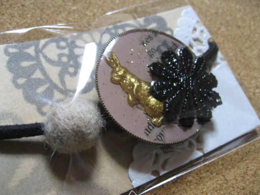 ゴムの結び目は羊毛ちゃんで包んでいます。