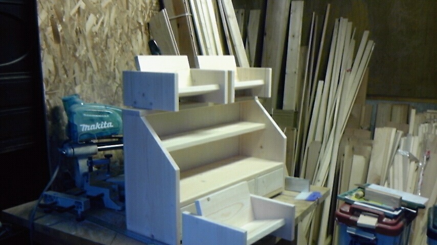 ちょっと大きめの棚(引き出し3杯)やブックスタンド。