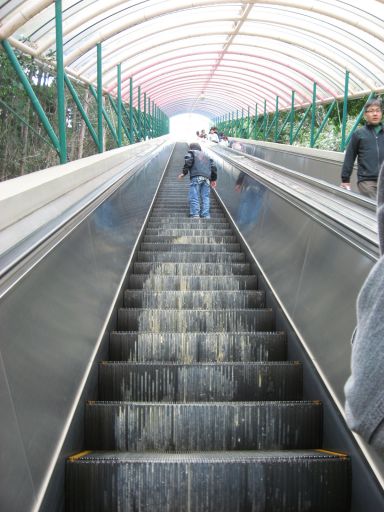 長いエスカレーターに乗りたいがためだったのですが、振り返ったら結構高かったらしく急にへっぴり腰になって『ちょっと待って!』という時のポーズに。