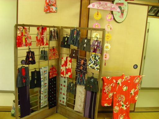 お義母さんと愉快な仲間たちによるミニ着物の展示 ↓↓