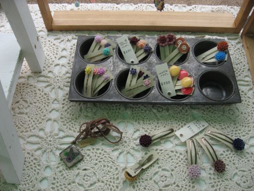 フラワーカボションやレトロボタンのヘアピン。