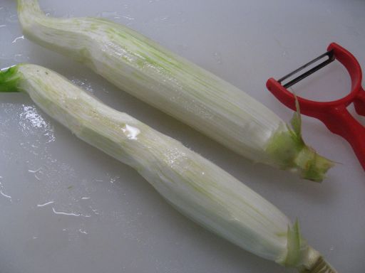 剥き終わったら先と元を切り落として(先に落としてもいいですよ) ↓