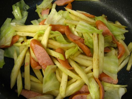 マコモ茸とキャベツとウィンナーで野菜炒めにしてみました ↓